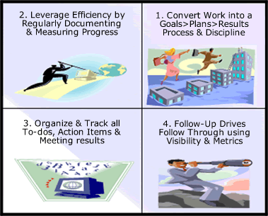 that is cross referenced against existing goals and action plans. Details do not slip through the cracks, and meetings become both shorter and more efficient.